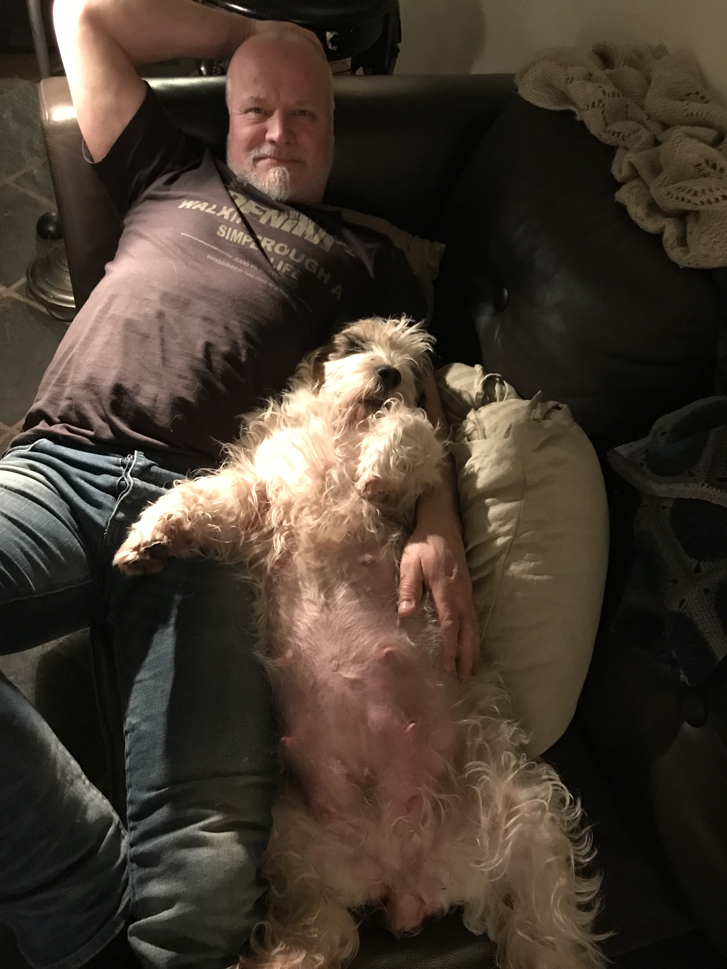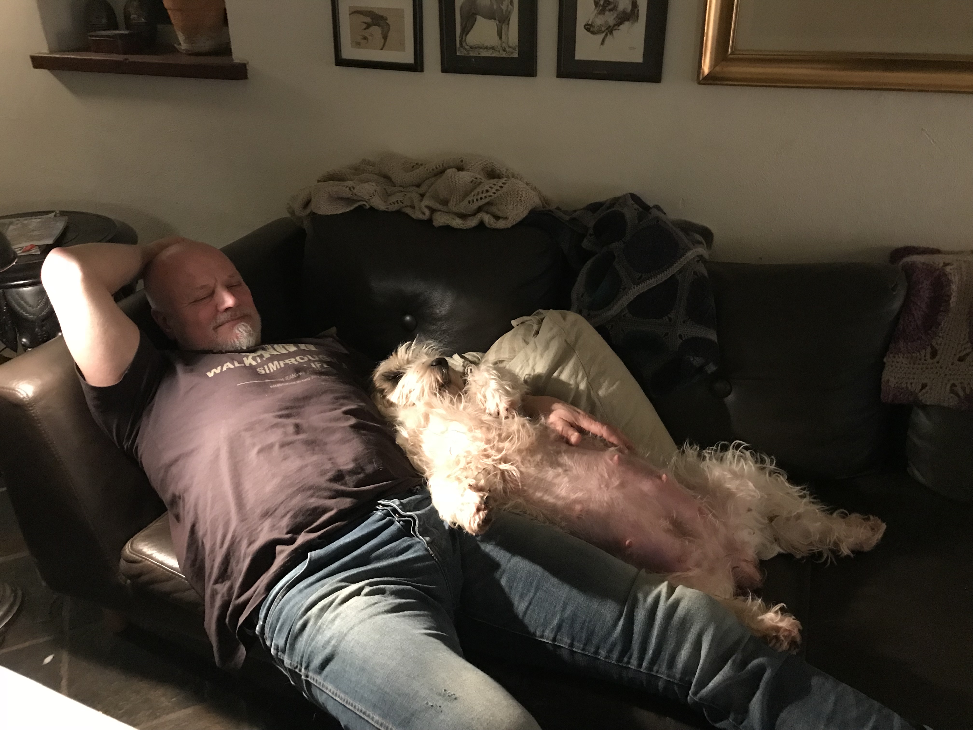 Carla now only has one week left of her pregnancy and her belly is now quite obvious, to say the least! She has certainly slowed down her tempo, and she has given up on chasing the birds in our field – Penny has to do the job alone now. ;o) Carla is doing good and doesn’t seem to be too bothered with the growing belly – and she still enjoys flatting out in the couch in the evening… ;o)